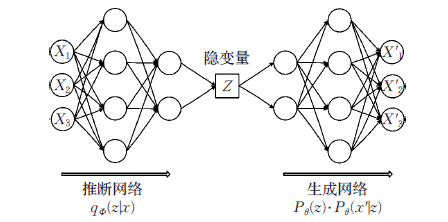- 另一个根据生成的隐变量变分概率分布,还原生成原始数据的近似概率分布,称为生成网络